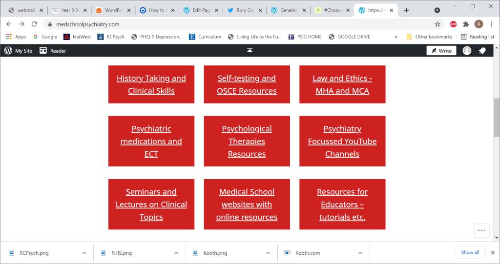 A collaborative website created by medical schools across the UK, Med School Psychiatry is a brilliant resource for an introduction to learning psychiatry. It includes history taking & clinical skills sections, seminars and lectures, mock OSCES & You-Tube Videos…. https://medschoolpsychiatry.com/